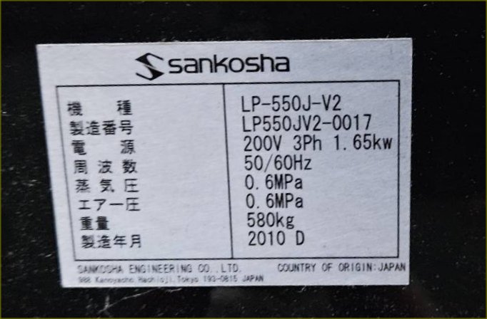 三相200V、50/60hz、熱:蒸気、駆:エアー、