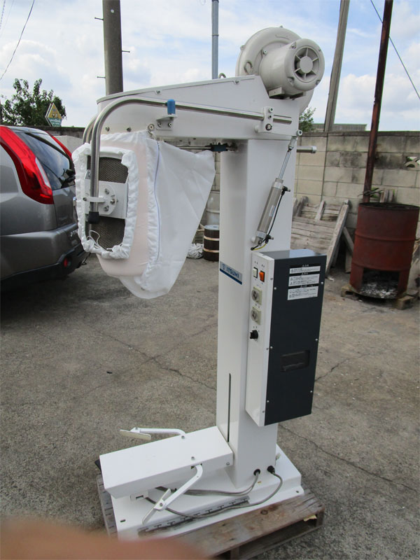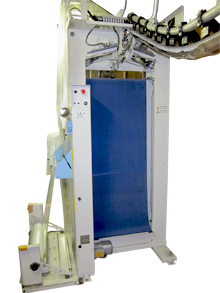 専用ハンガーを使いトンネルで仕上げた商品を完全自動でたたみ、更に搬出コンベアへ送りだすことができます。(専用ハンガーも戻り専用のコンベアにより自動でトンネルの入り口まで戻せます) 本商品は現行稼働品ということもあり、コンベア用モーター2基、ムカデ(昇降用コンベア)、メンテ済み専用ハンガー(200本)をお付けしての販売となります。