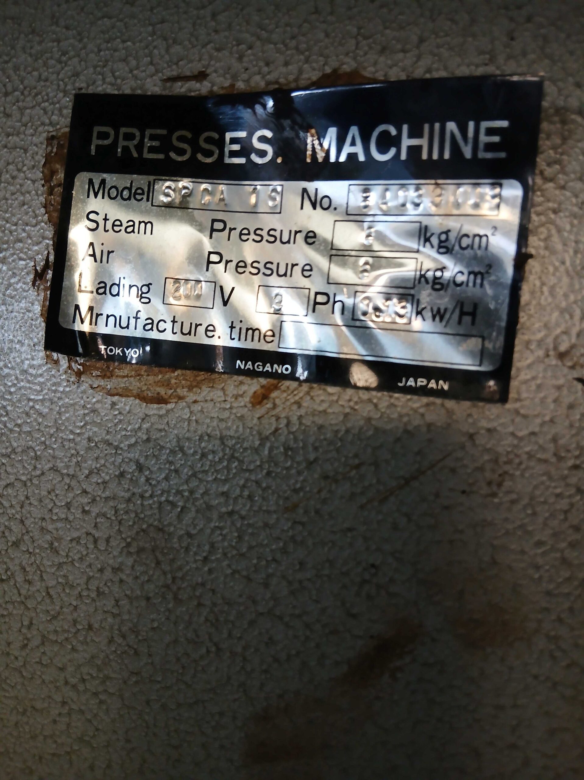 | 仕様 | 三相200V 50/60hz 熱:蒸気 駆:エアー |