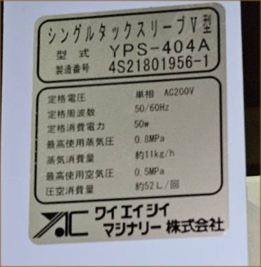 仕様 単相200V 50/60hz 熱:蒸気 駆:エアー