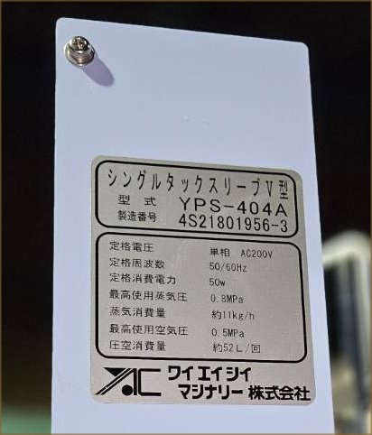 | 仕様 | 単相200V 50/60hz 熱:蒸気 駆:エアー |