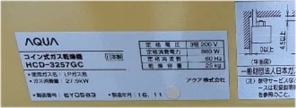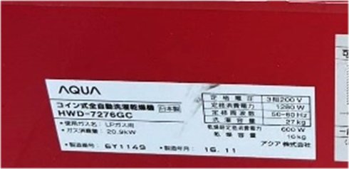 型式 洗濯乾燥機 3台  HWD-7176 2台 HWD-7276 1台    コインガス乾燥機 4台  HCD-3147GC 3台 HCD-3257GC 1台