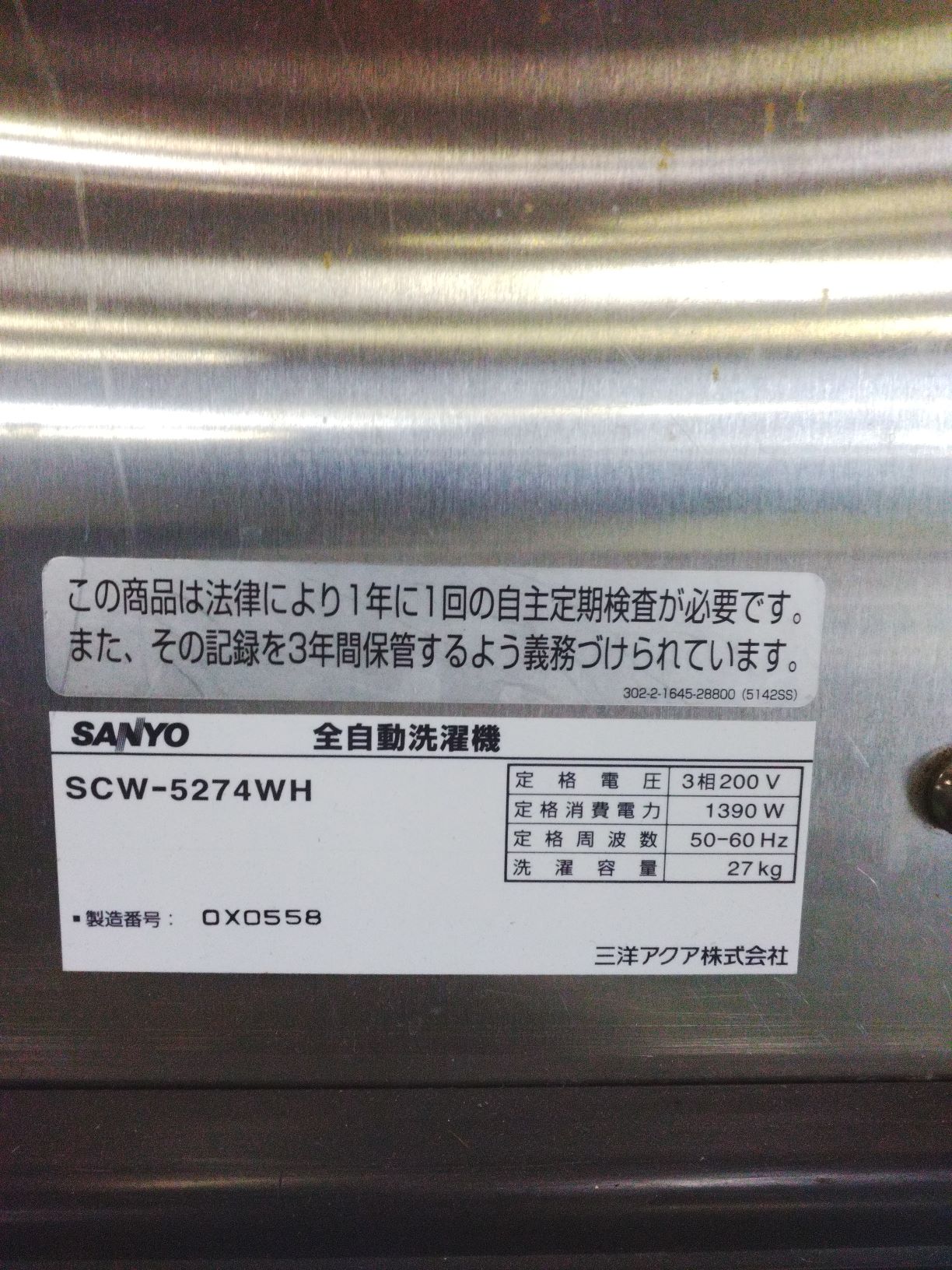一般の業者様や施設様などにちょうどよい27㎏サイズの洗濯機(給湯弁付き)となります。